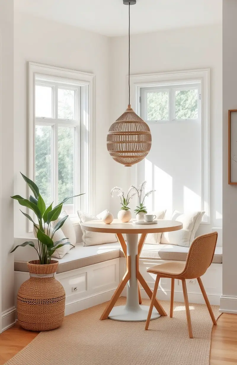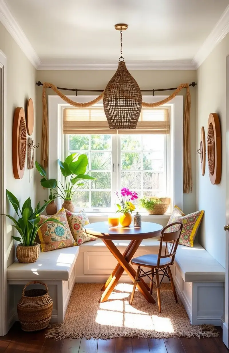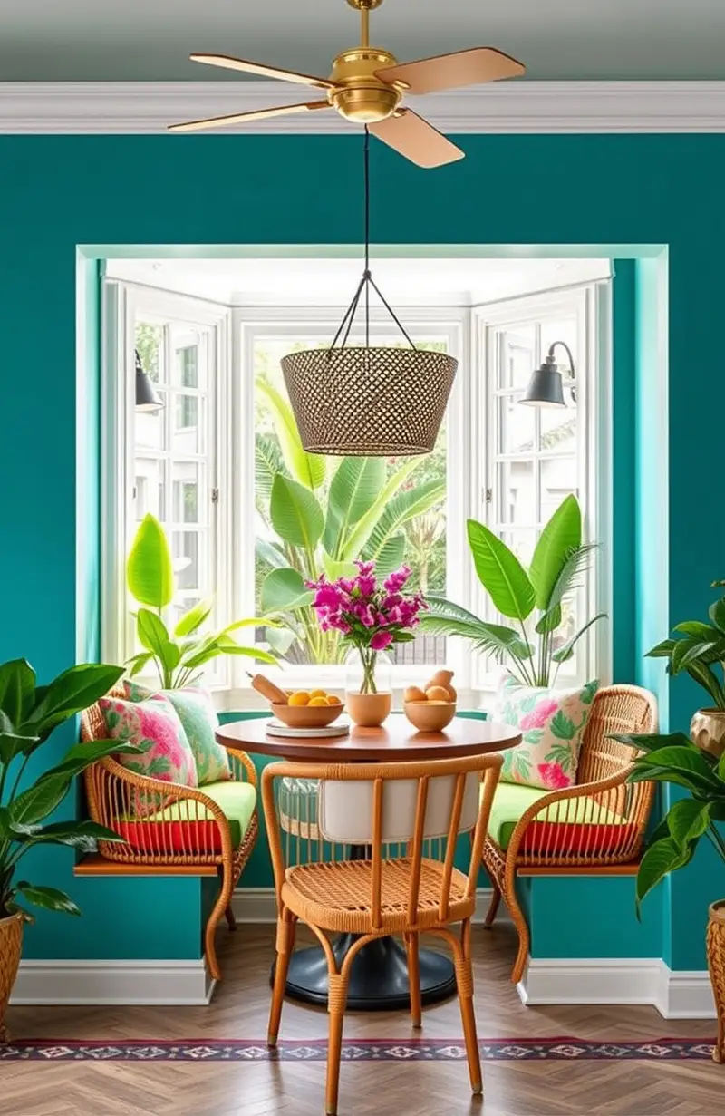 Transform your dining nook into a tropical paradise. Use vibrant colors, rattan furniture, and lush plants.