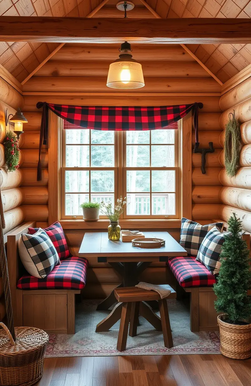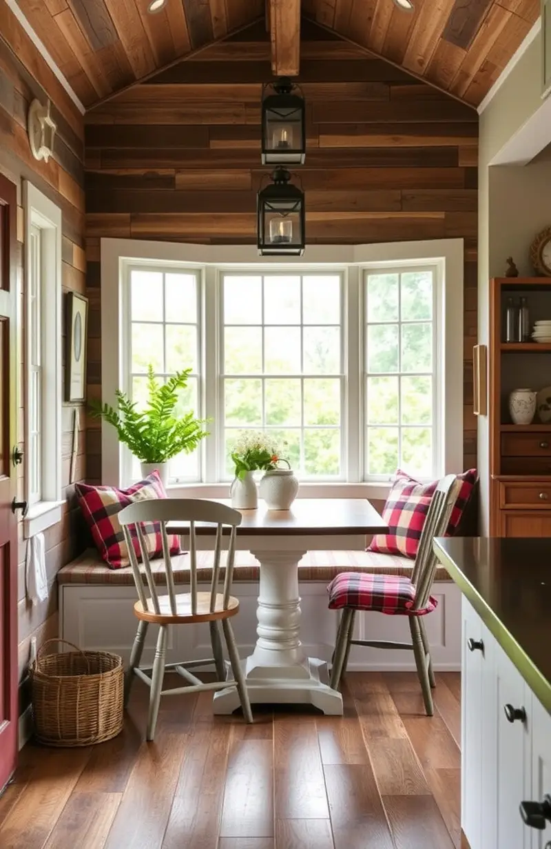 Create a warm, inviting space with a rustic farmhouse look. Use reclaimed wood, vintage lanterns, and plaid textiles.