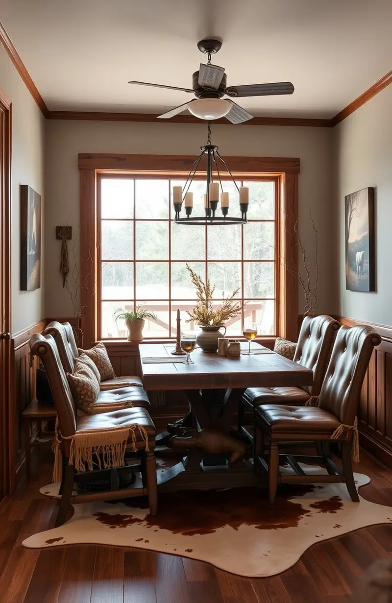 Consider a sturdy farmhouse table and mix-matched chairs for an authentic feel. This idea can be both charming and cost-effective.
