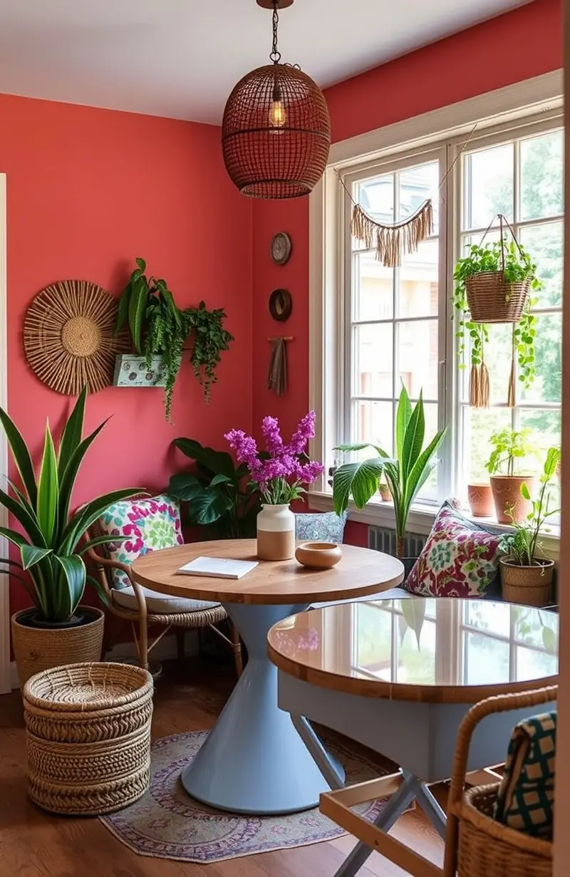 Bring the outdoors in with a bohemian garden-inspired nook. Use natural materials, vibrant colors, and eclectic decor.