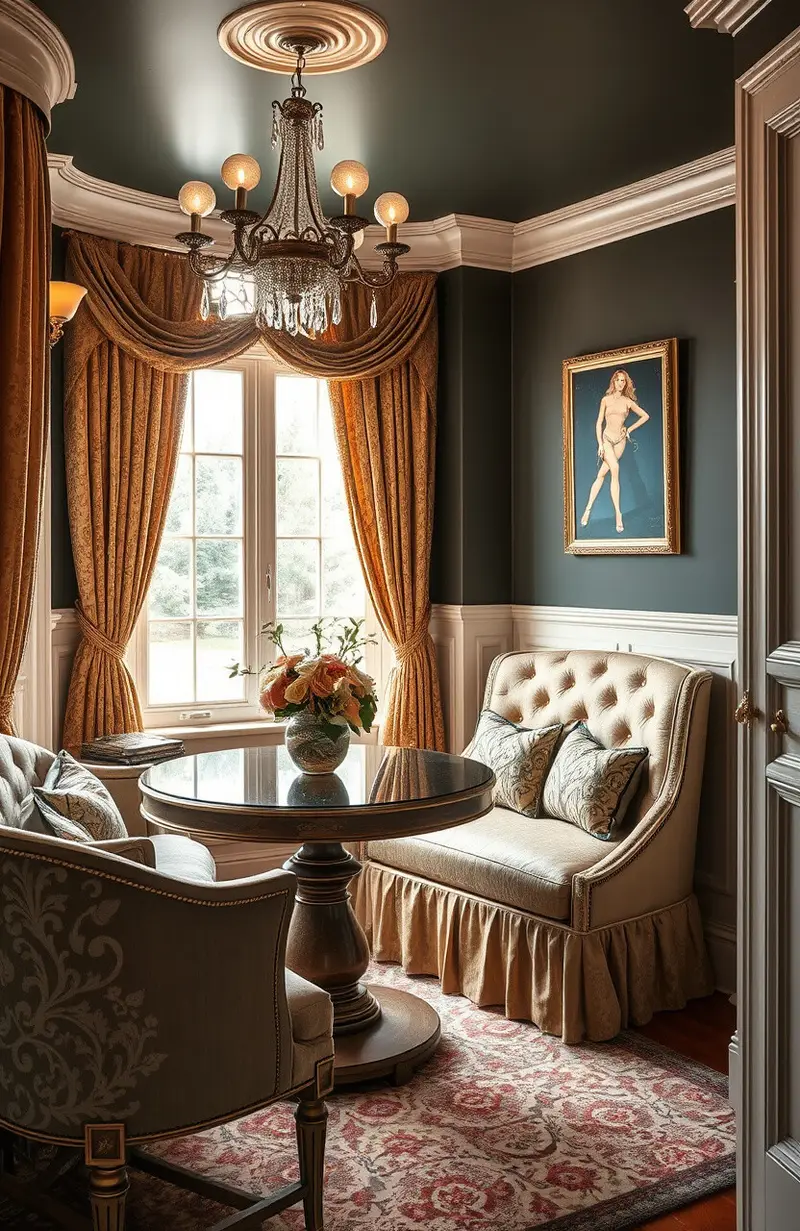 Embrace timeless beauty with a classic elegance nook. Use rich fabrics, ornate details, and a refined color palette.