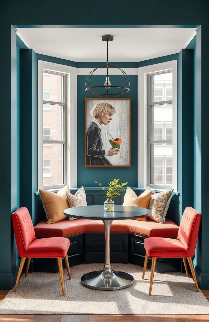 Channel the sleek style of the 1950s and 60s with a mid-century modern nook. Use iconic furniture pieces and bold colors.