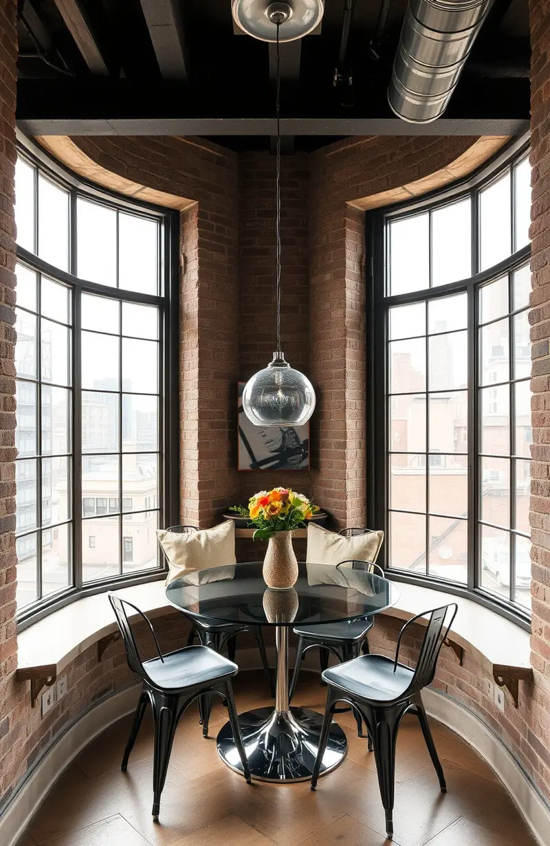 Combine raw elements with polished design for an industrial chic nook. Think exposed brick, metal accents, and Edison bulbs.