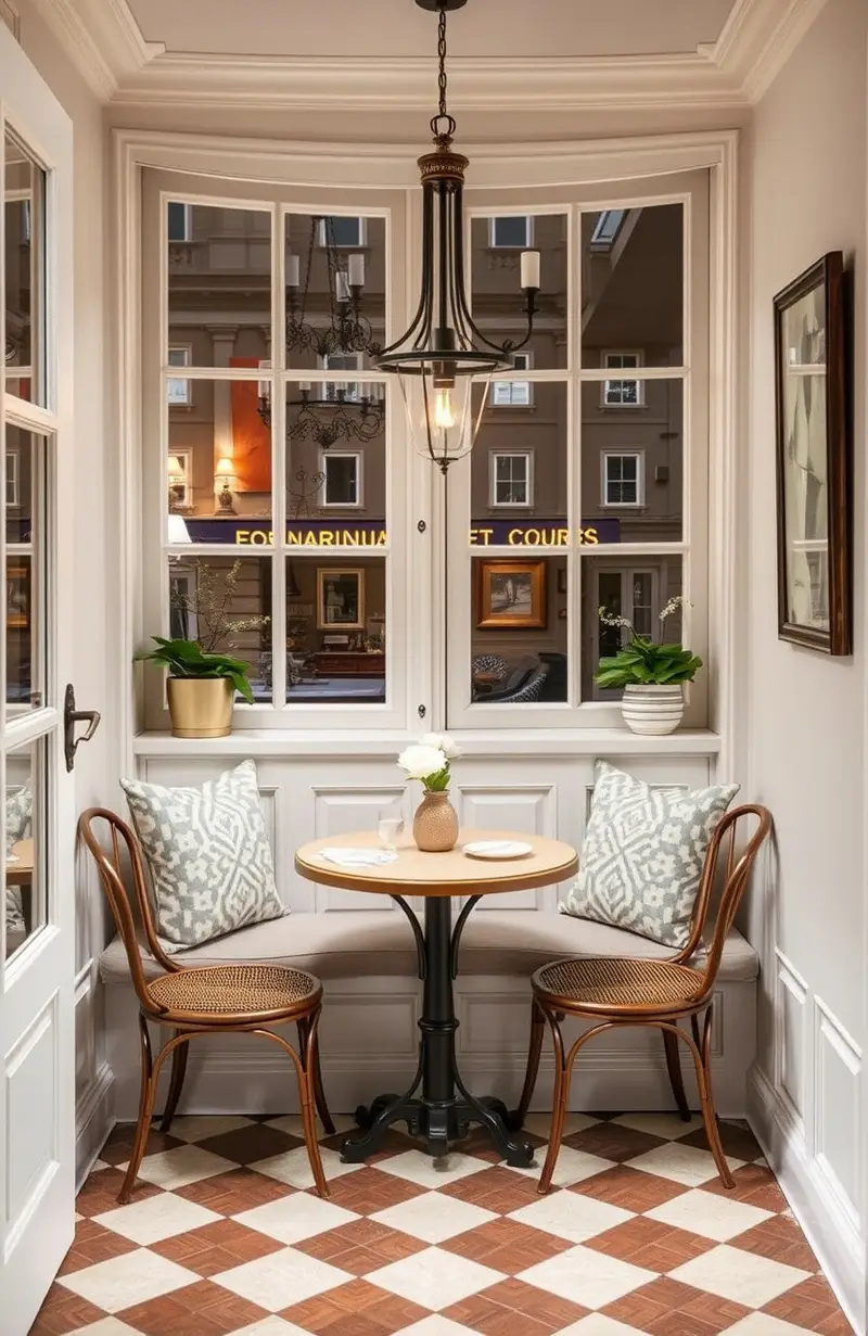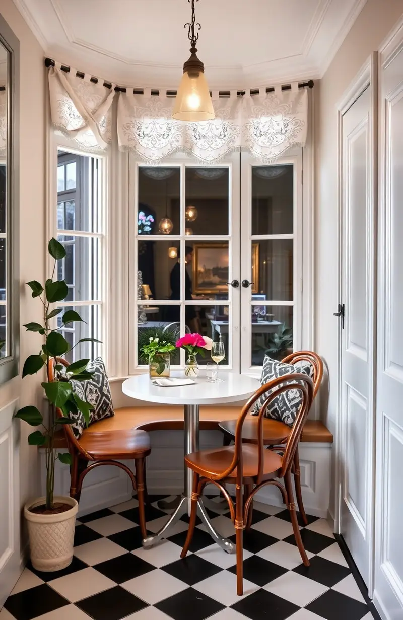 Bring the charm of a Parisian cafe into your home with a French bistro-inspired nook. Think café curtains, bistro tables, and classic bentwood chairs.