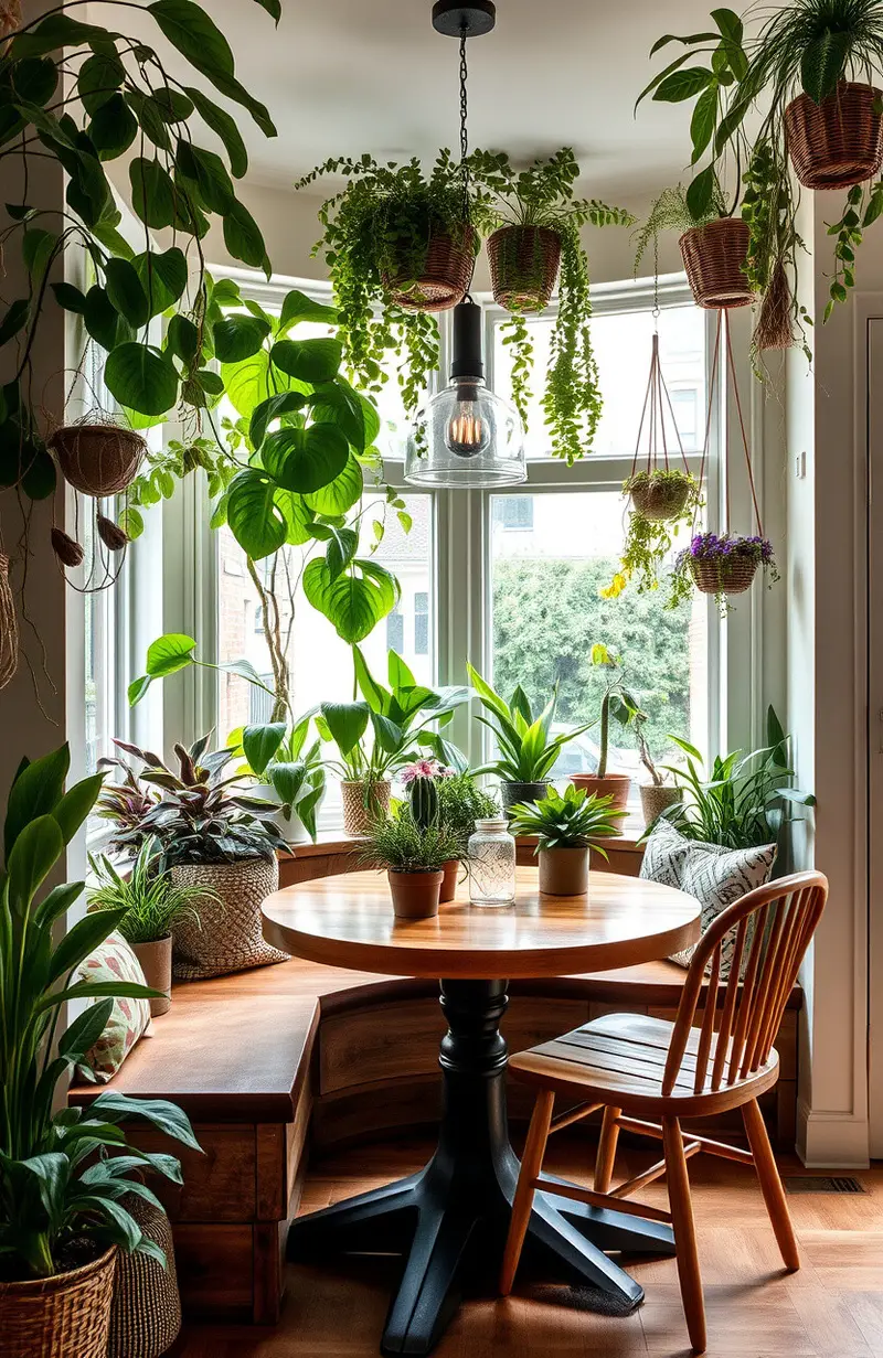 Create an oasis in the city with an urban jungle dining nook. Use an abundance of plants and natural materials.