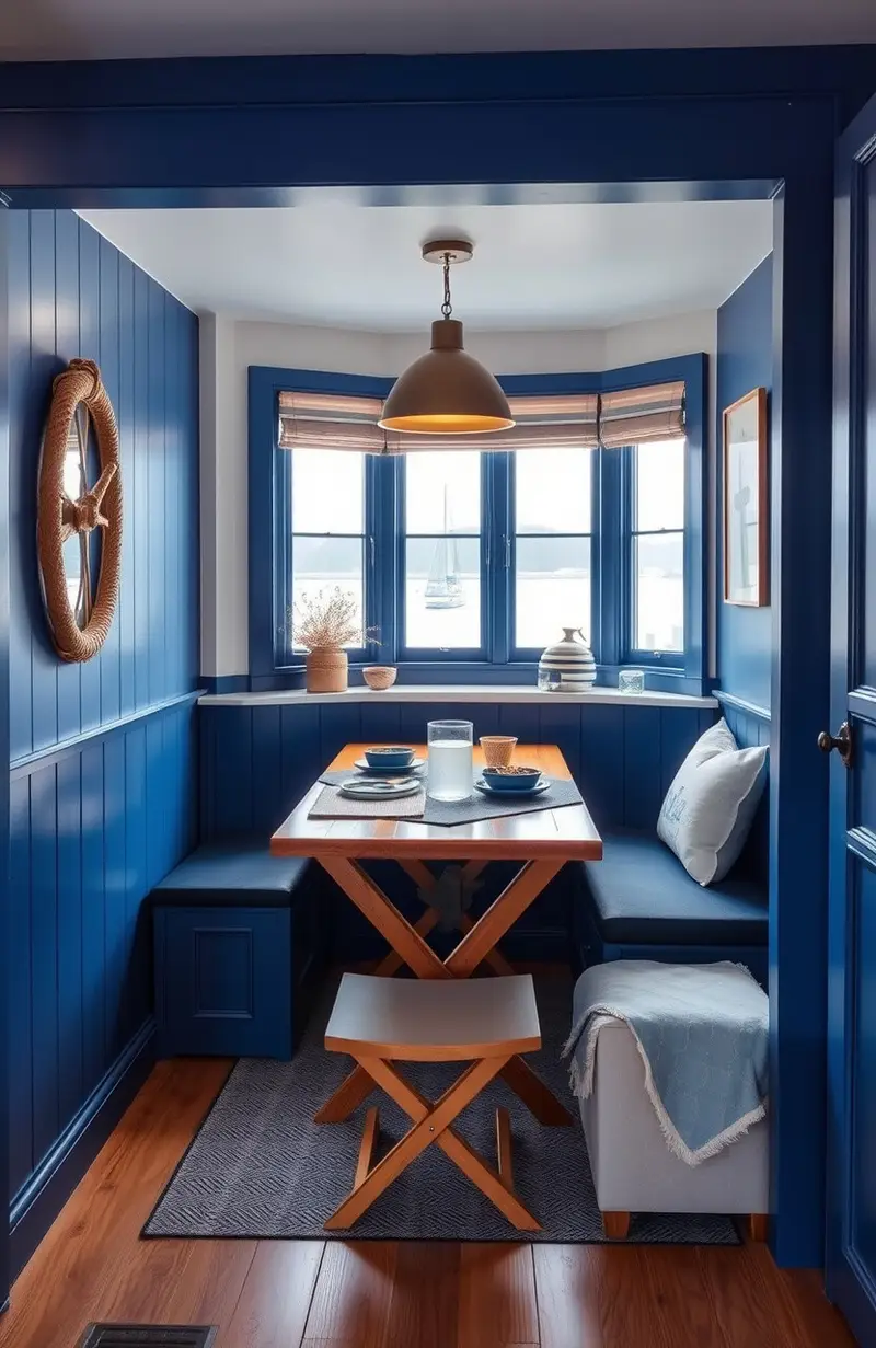 Set sail with a nautical-themed dining nook. Use navy blues, whites, and maritime decor.
