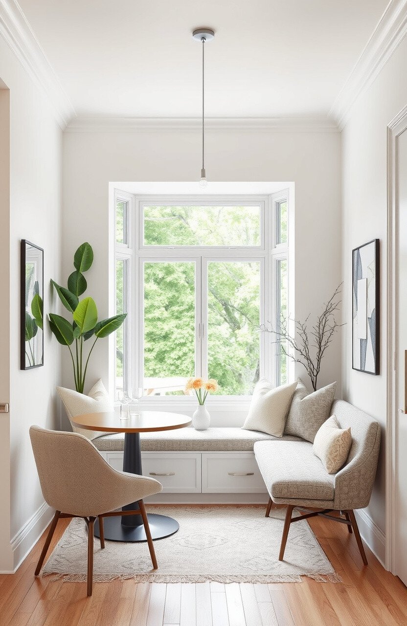 A minimalist bay window nook brings peace and simplicity to your kitchen. Keep the space clutter-free with sleek furniture.