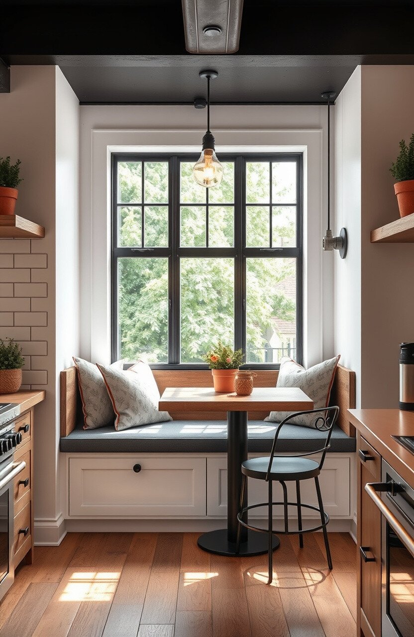 Envision a nook with industrial chic style. It’s a modern and edgy choice.