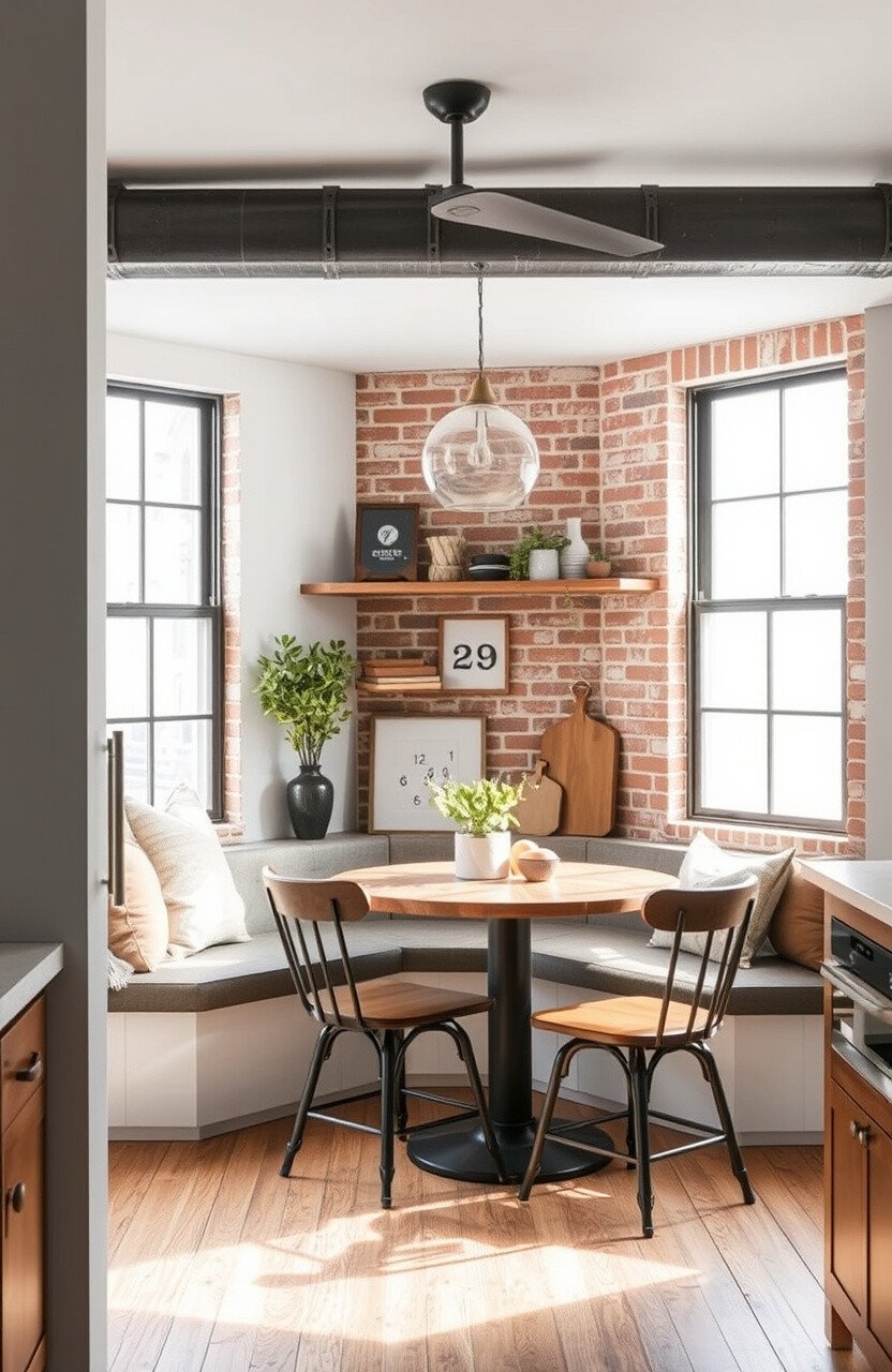 Add a touch of urban chic with an industrial-themed nook. Exposed metal and raw wood create a trendy space.
