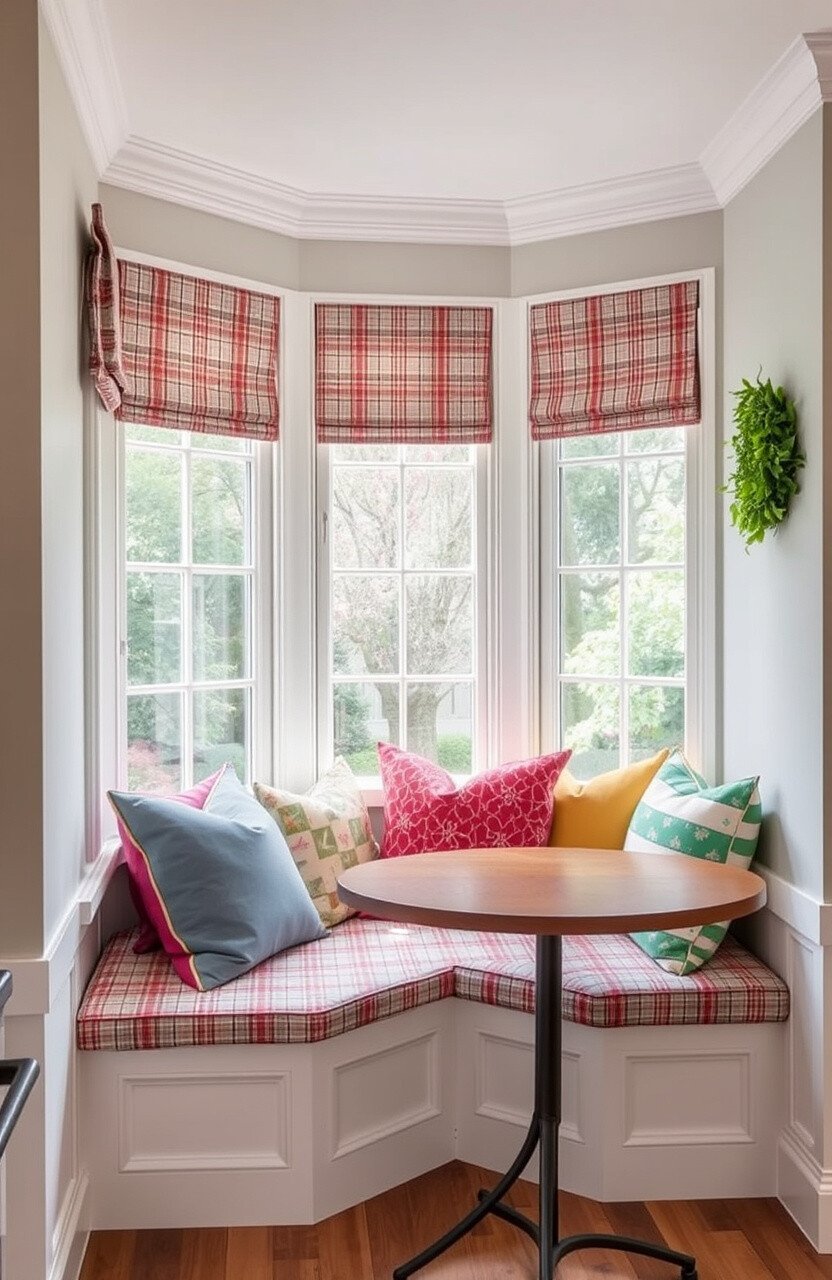 Add a variety of colorful cushions to create a snug corner. This makes the nook perfect for reading or relaxing while enjoying a meal.