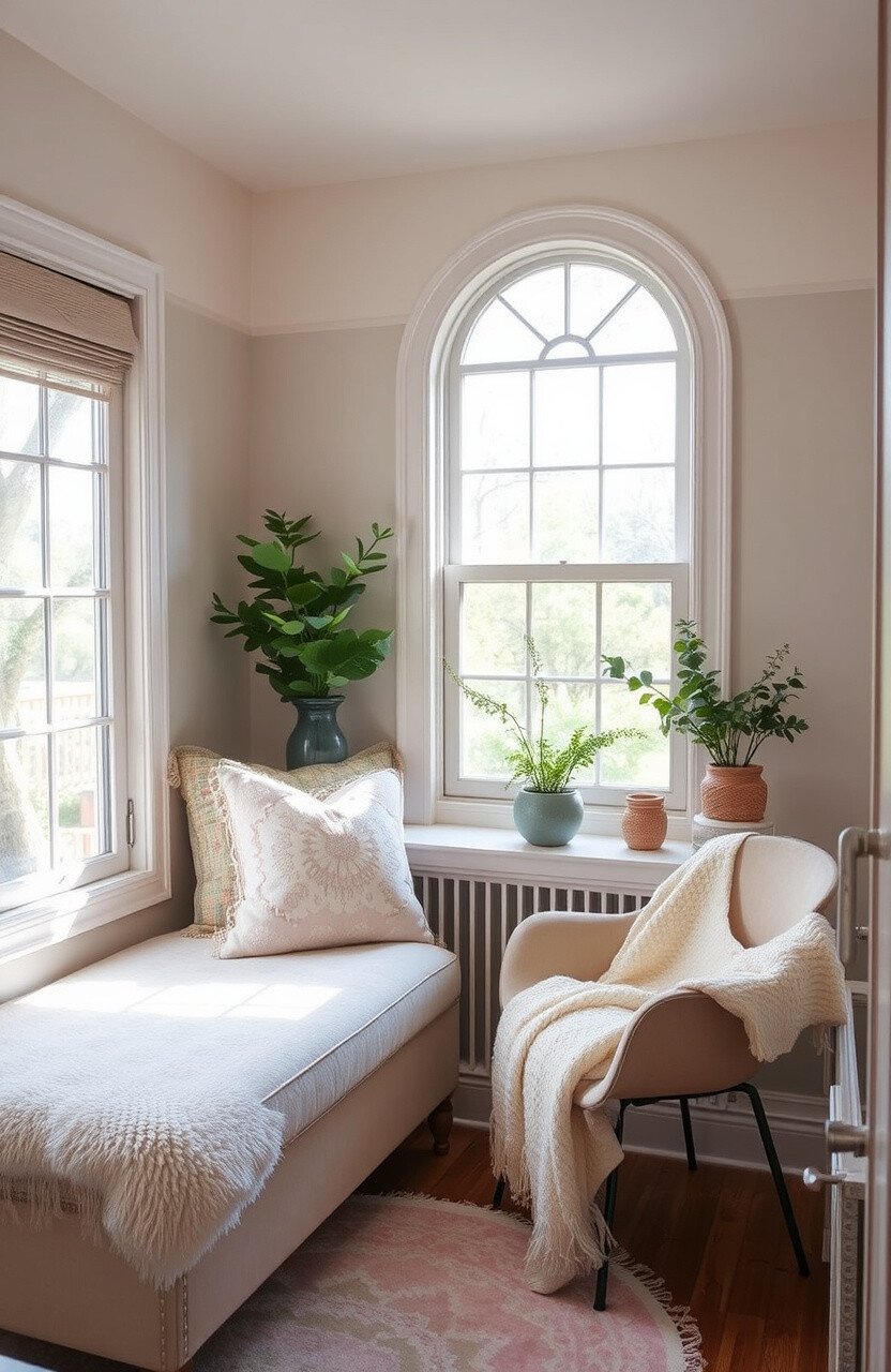 Use soft colors and plush fabrics for a serene nook. This style is calming and perfect for unwinding after a long day.