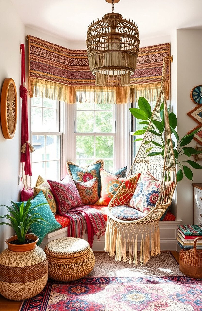 Imagine vibrant colors and eclectic patterns. This nook is a feast for the eyes and soul.