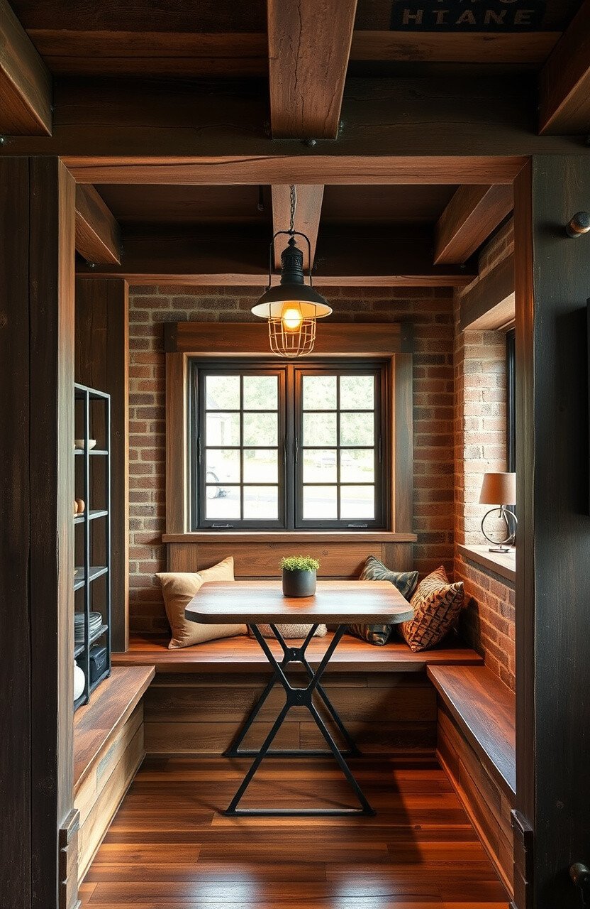 Picture exposed beams and metal accents. This nook combines rugged charm with urban flair.
