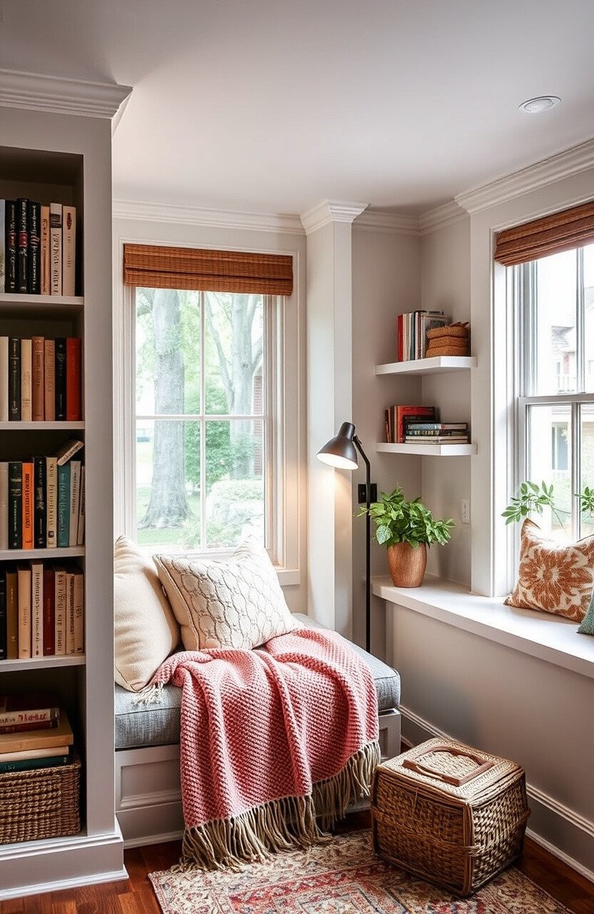 Picture plush cushions and a warm blanket. This nook is a book lover’s dream.