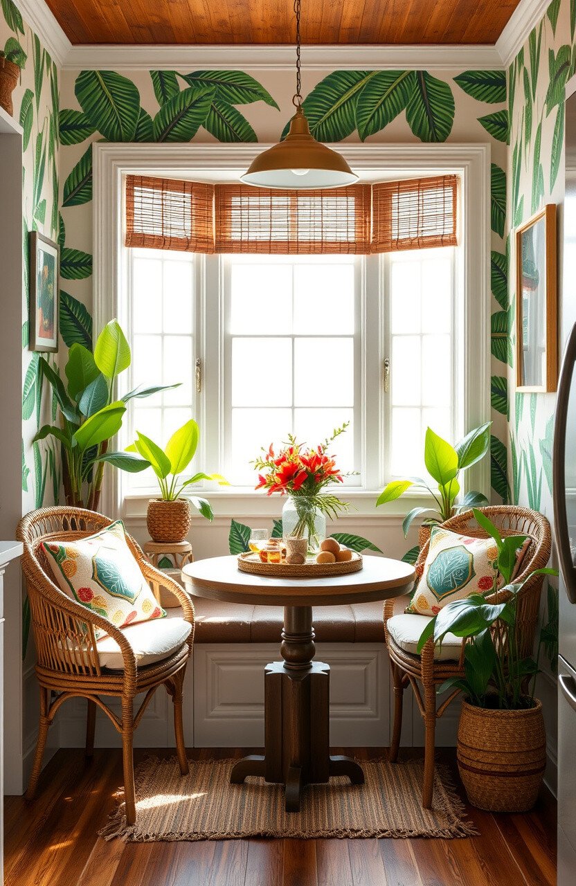 Imagine palm prints and bright colors. This nook feels like a sunny island getaway.