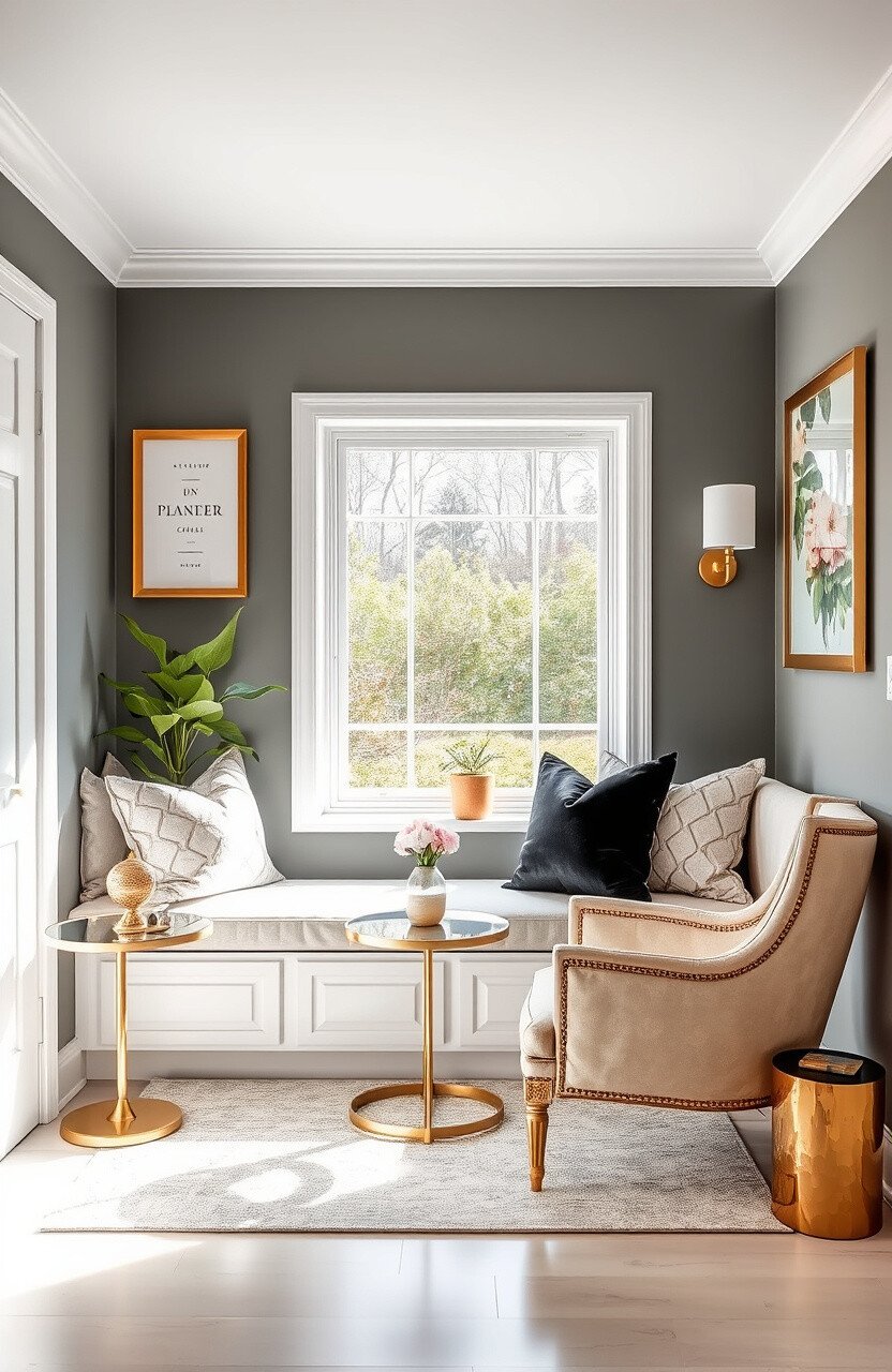 Bring a touch of modern glam to your nook with metallic accents and chic decor. This idea is perfect for those who love a stylish and luxurious space.