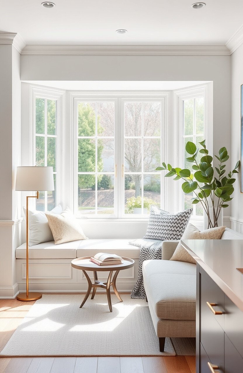 For those who love clean lines and minimalism, a modern bay window nook is ideal. Keep the space uncluttered with sleek furniture and a neutral color palette.