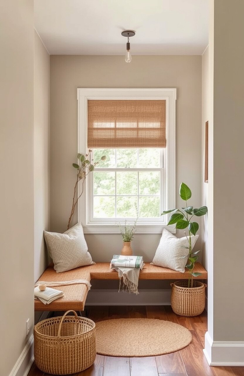 Create simple serenity in your nook with neutral tones and minimal decor. This idea is perfect for those who love a peaceful and calming space.