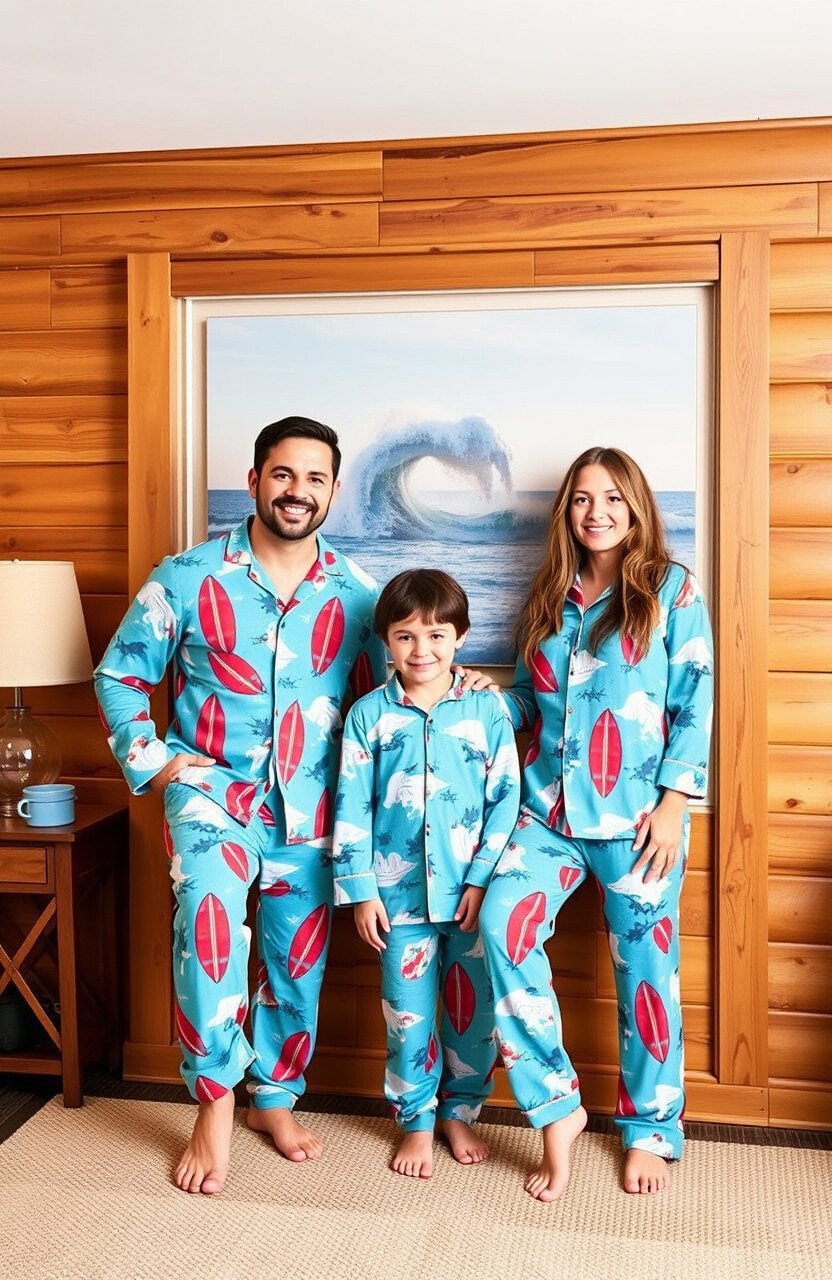 Ride the waves of comfort with these surfer-inspired pajamas. The vibrant surfboard prints and ocean blue hues will have your family dreaming of catching the perfect wave.