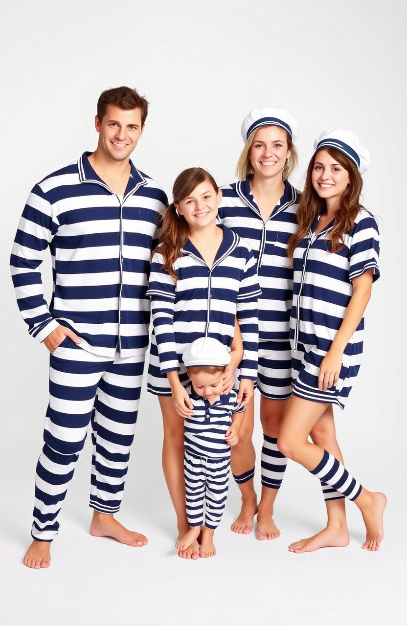 Set sail on a wave of comfort with these nautical stripe pajamas. The classic navy and white stripes are reminiscent of sailor uniforms, adding a touch of maritime flair to your family’s nightwear.