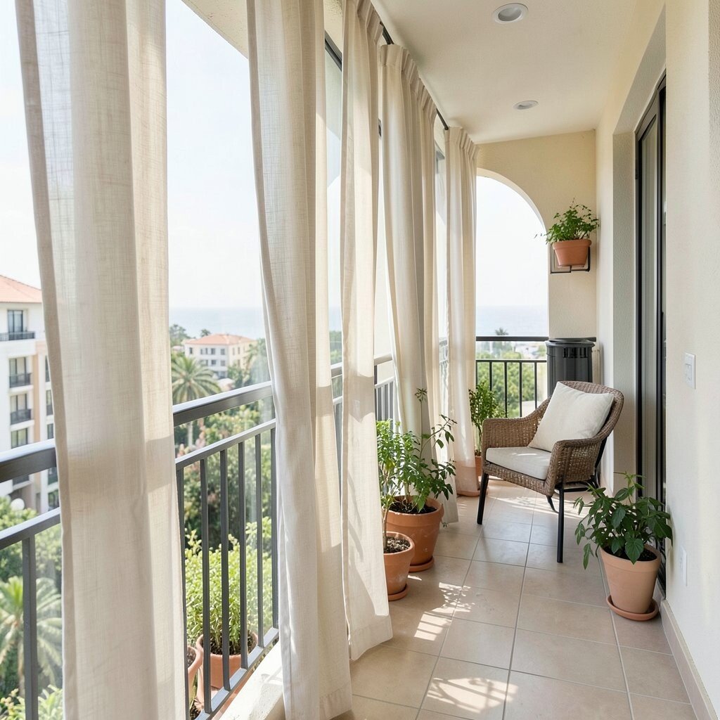 Outdoor curtains can make a balcony feel gentle and airy. They move with the wind and give the space a light, pretty look.