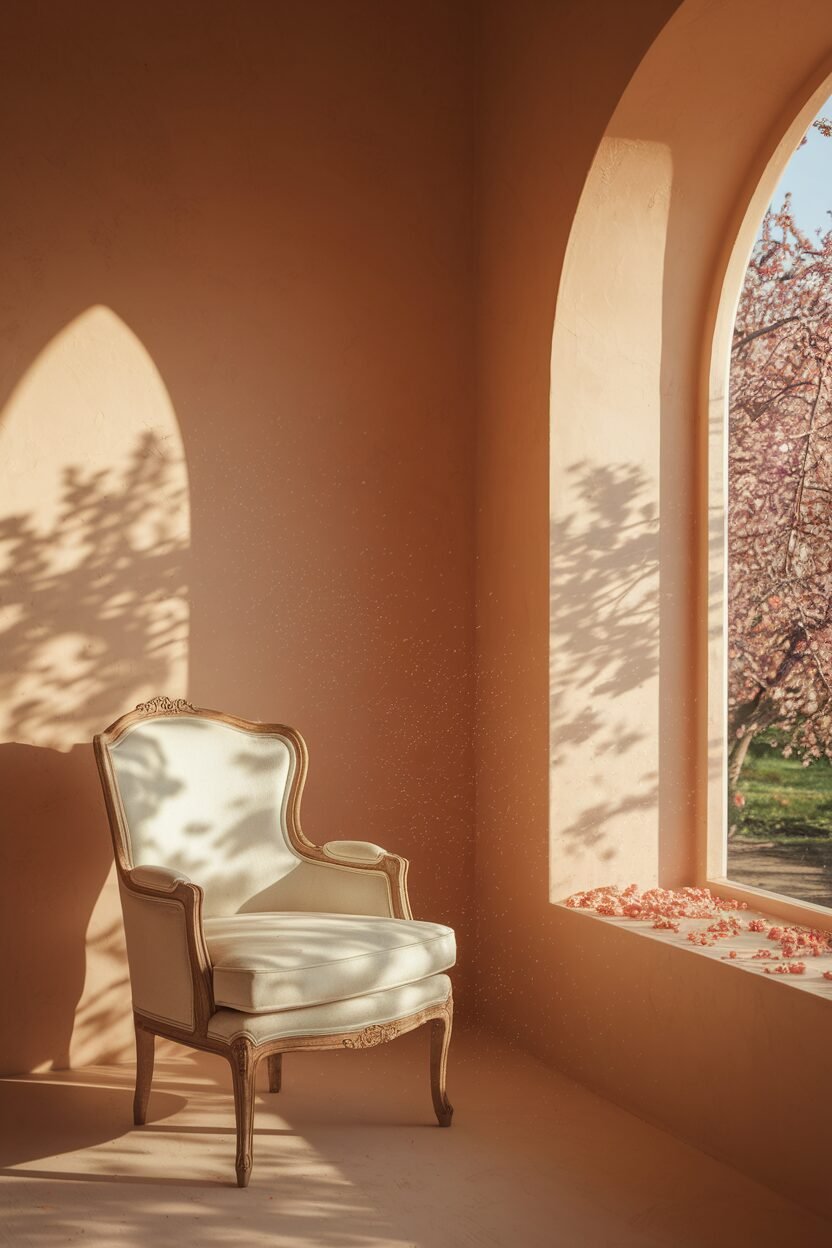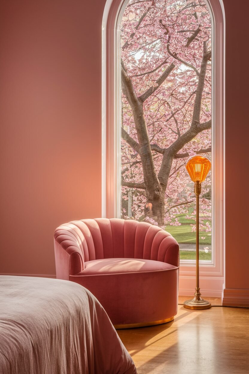 Personalize with peachy bedding or soft lighting for added warmth. This color is trending in vintage and retro designs.
