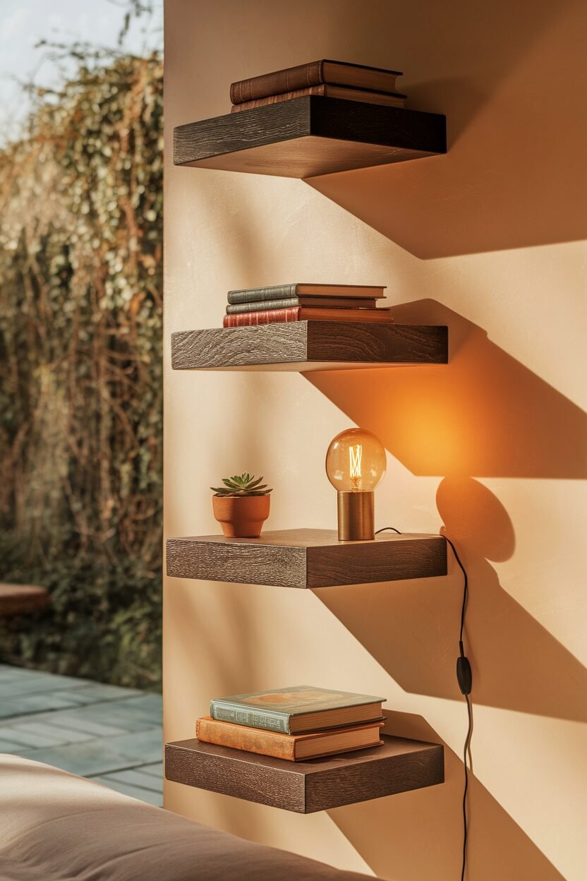 Floating shelves are a sleek and versatile decor option. Ensure they’re securely mounted for safety and style.