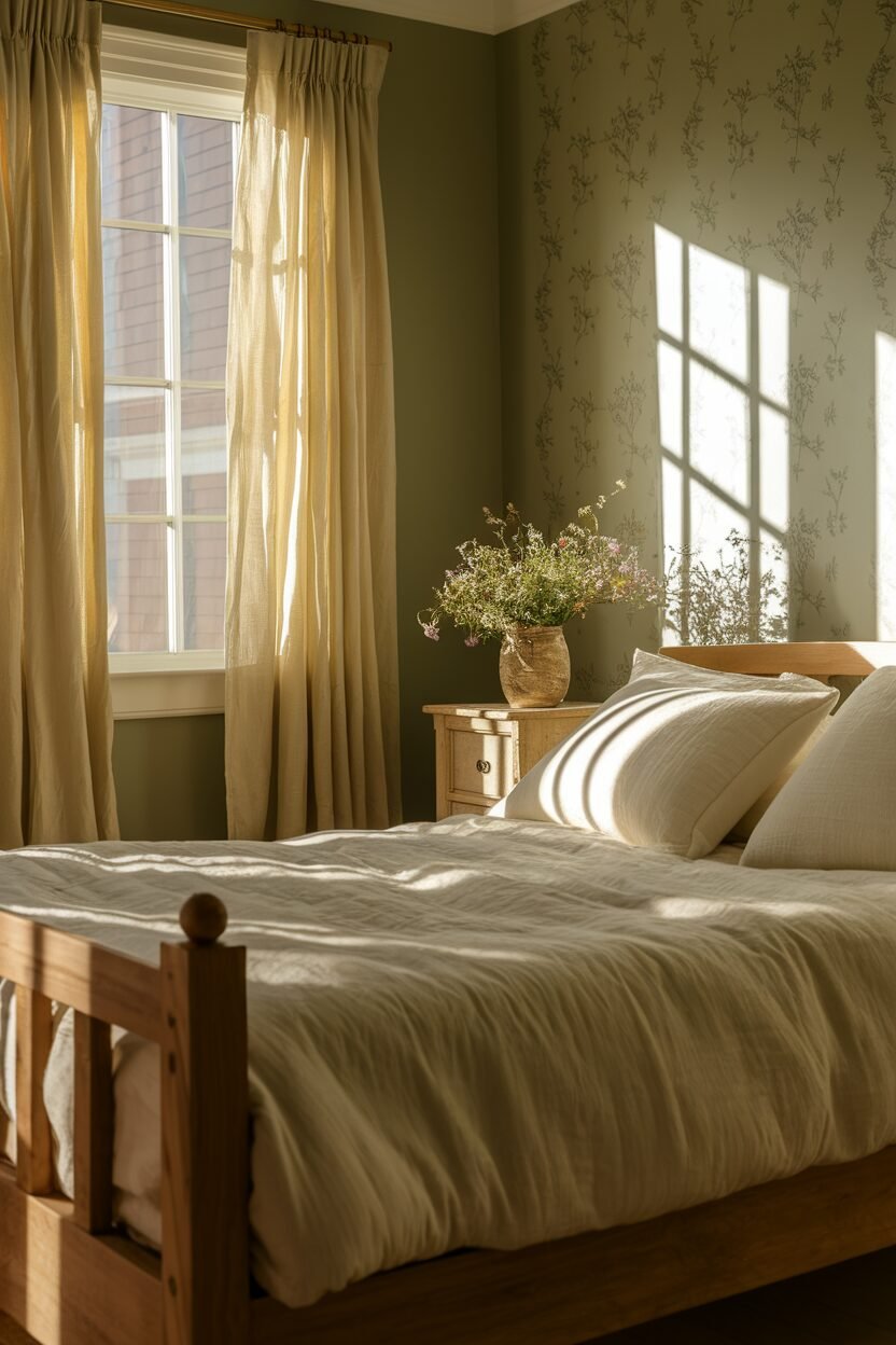 Olive green is a soothing, earthy color that brings nature indoors. It creates a peaceful environment, making your bedroom feel like a tranquil retreat.