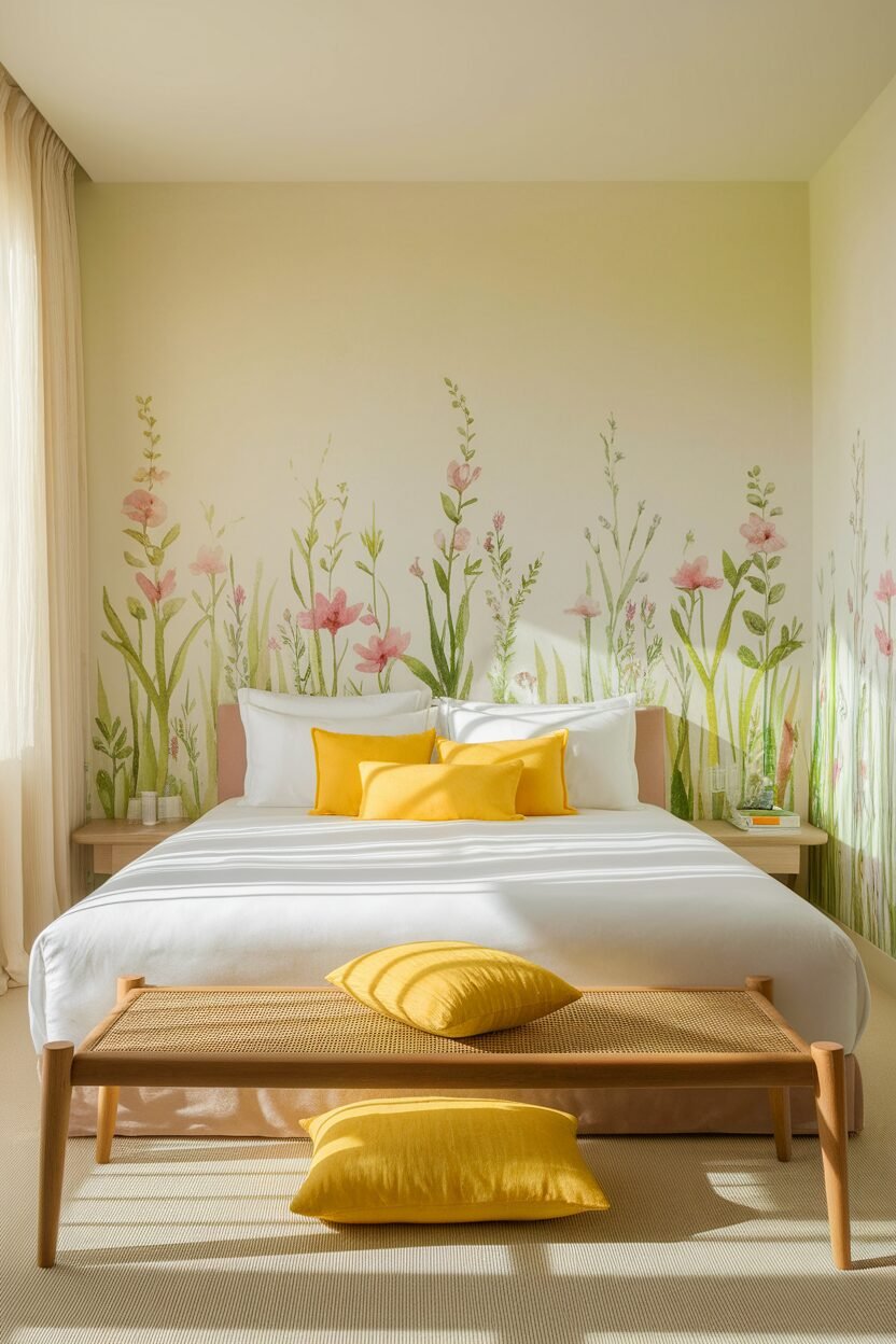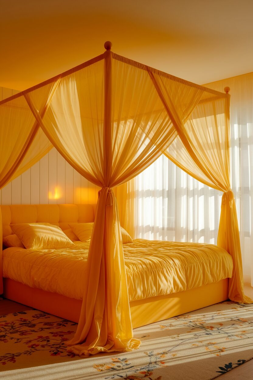 Bright yellow is like sunshine in your bedroom, bringing joy and energy to the space. It’s a bold choice that can instantly uplift your mood!