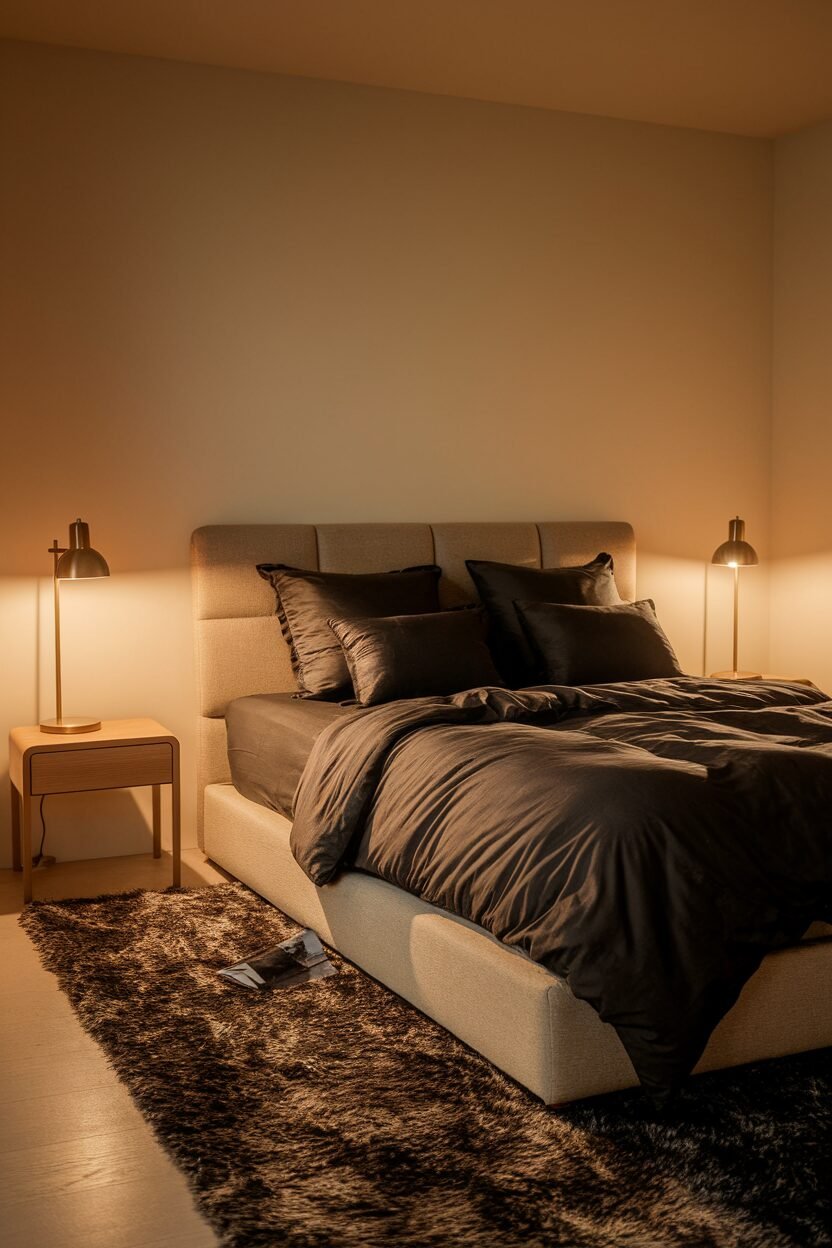 Warm beige brings a cozy, earthy tone to your bedroom. It’s like wrapping yourself in a soft blanket, making your space feel inviting and relaxing.