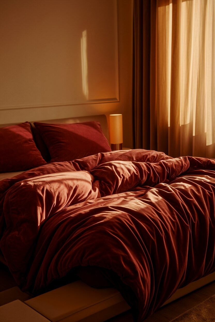 Burgundy is a rich, deep color that brings a touch of elegance to your bedroom. It’s a luxurious choice that adds warmth and sophistication!