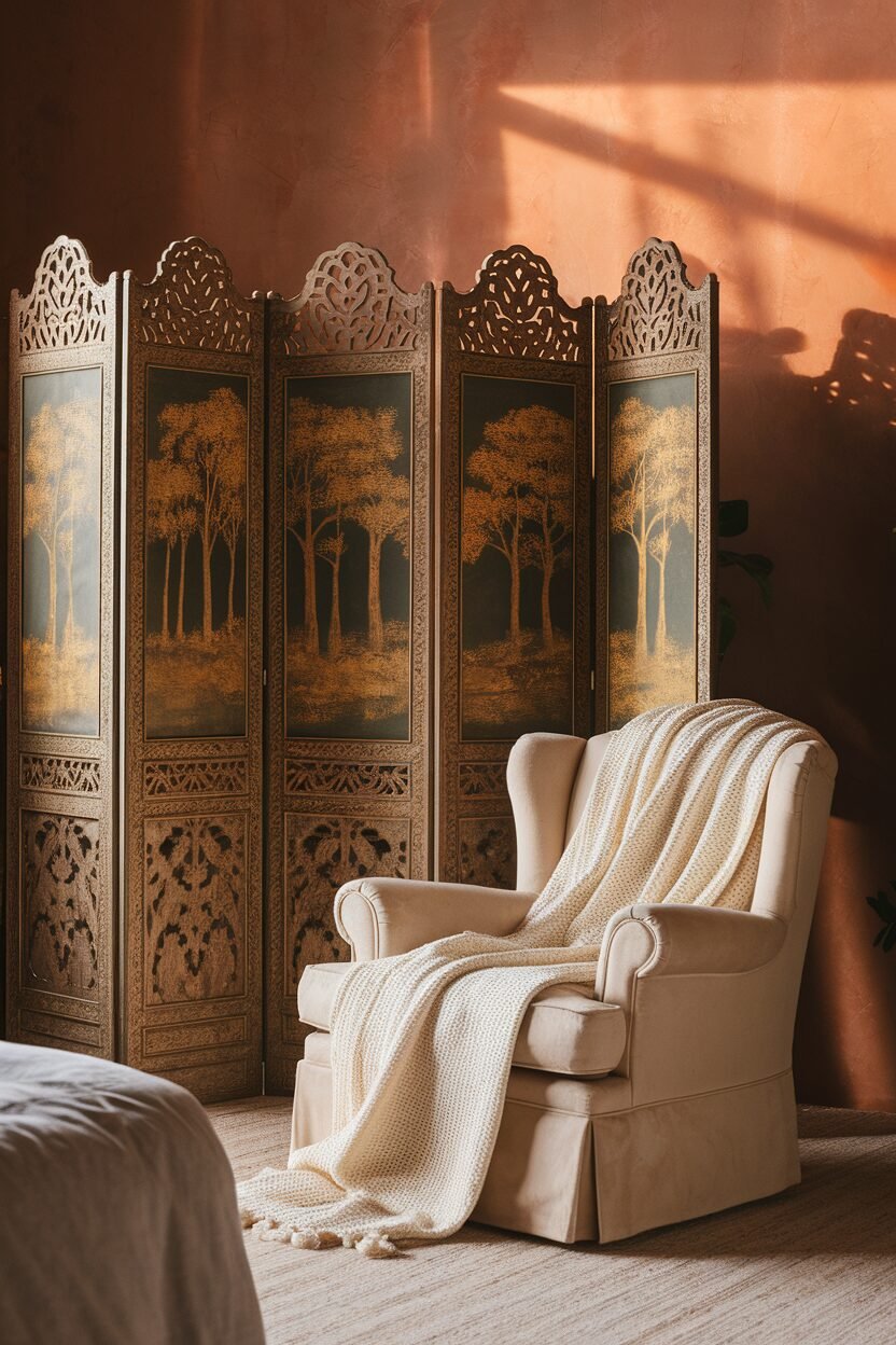 Folding screens offer flexibility and style. Use them to divide spaces or as a decorative backdrop.