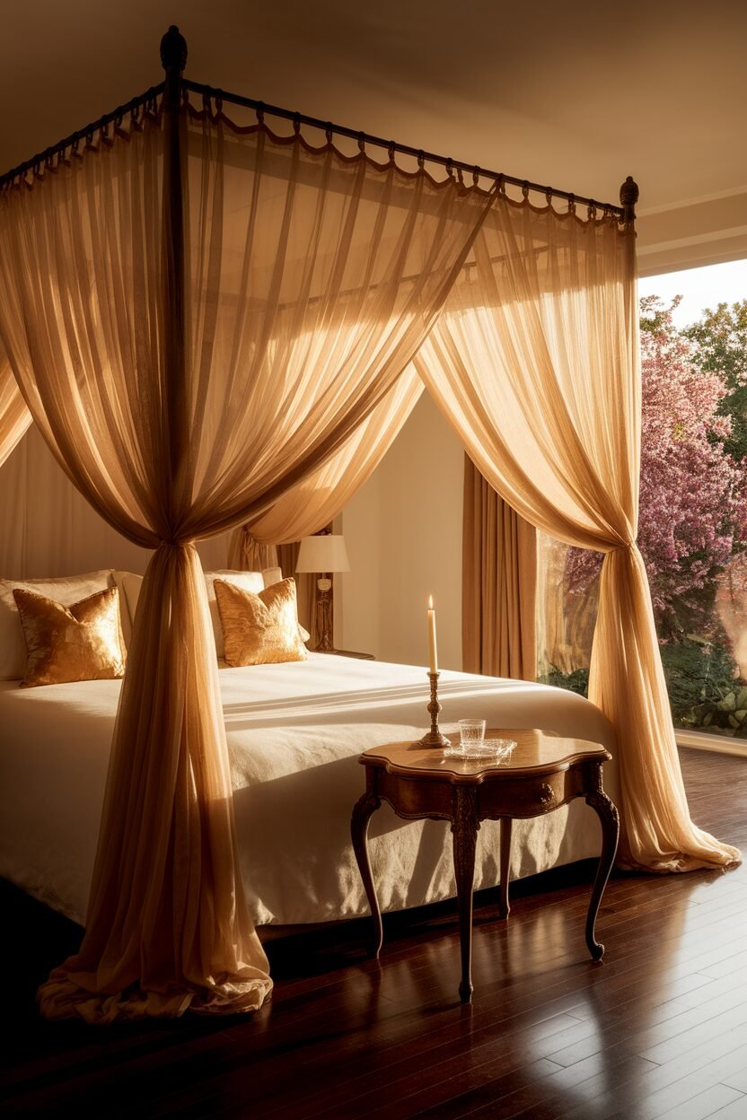 Canopy beds bring a sense of grandeur and romance to any bedroom. Draped with flowing fabrics, they can create a cozy retreat.