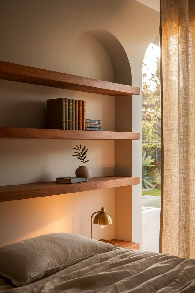 Floating shelves add storage without taking up space. They’re perfect for displaying your favorite items.