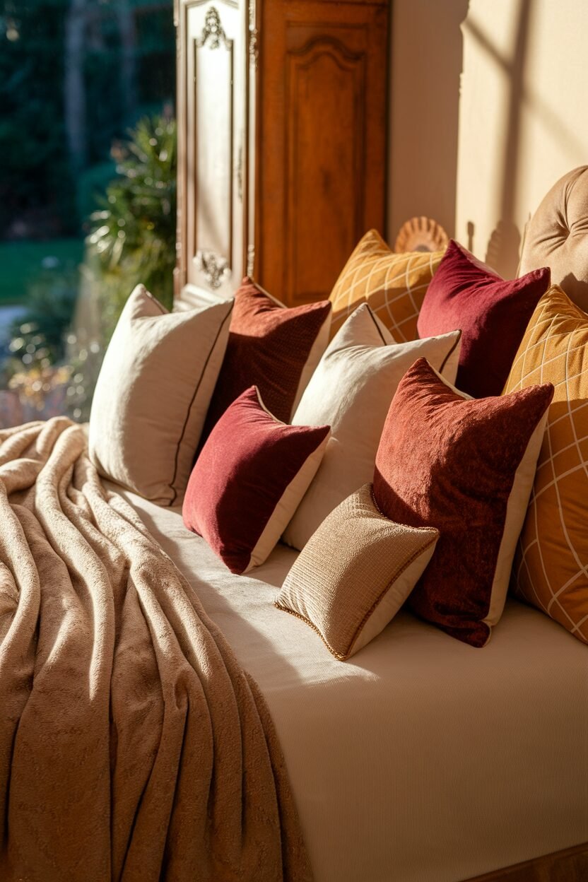Luxurious throws and pillows add comfort and style. They make your bed or seating area feel inviting and plush.
