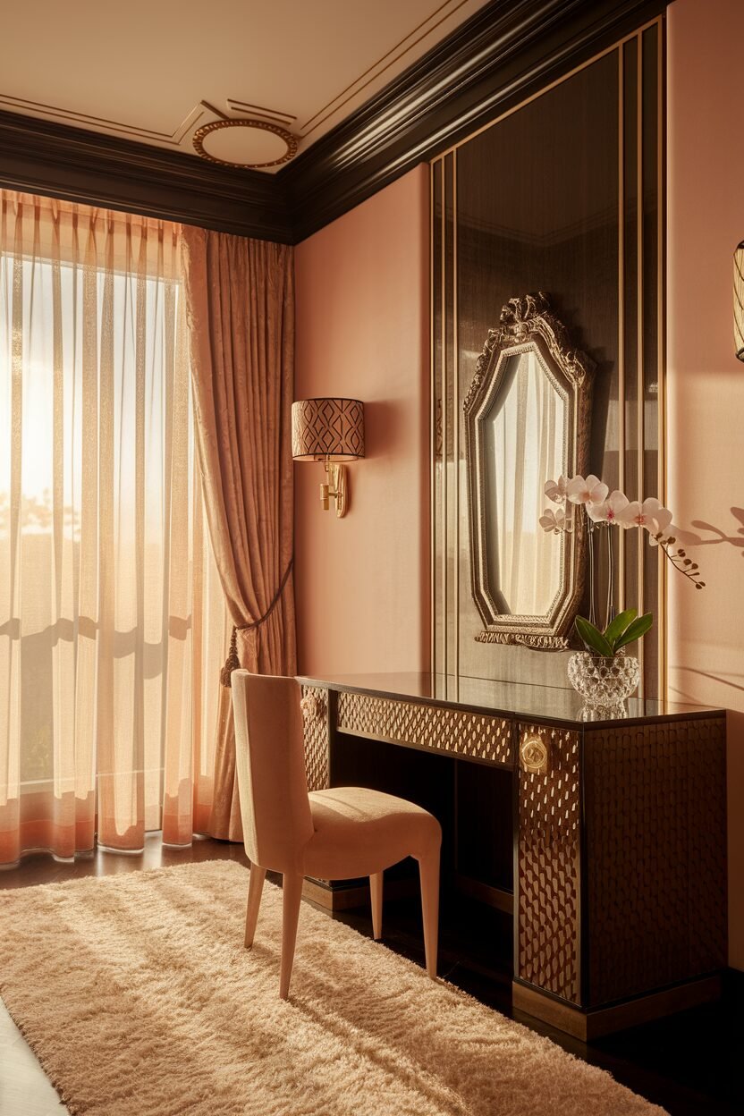 Achieve this look with velvet fabrics, mirrored surfaces, and metallic accents. Art Deco is all about combining elegance with drama.