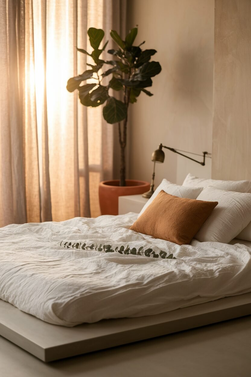 Create a peaceful oasis with a Zen-inspired bedroom. Neutral colors, natural materials, and minimal decor create a calming atmosphere.