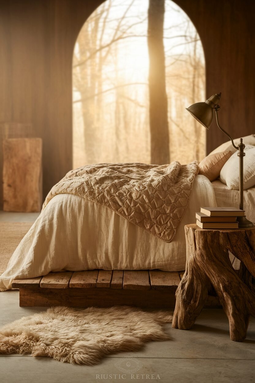 Bring the outdoors in with a rustic-themed bedroom. Natural wood, stone accents, and earthy colors create a cozy cabin feel.