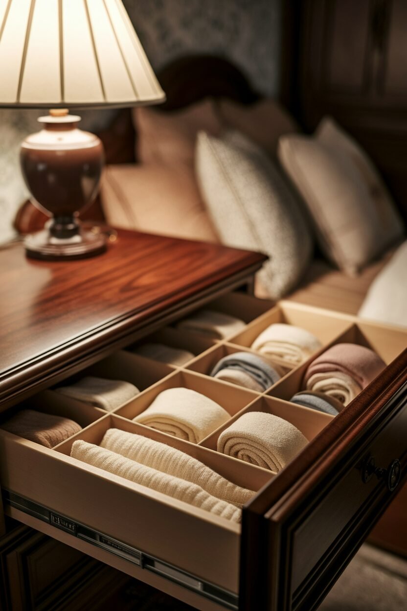 Add some personal touches like scented sachets or a small mirror. It’s a customizable space that reflects your personality.