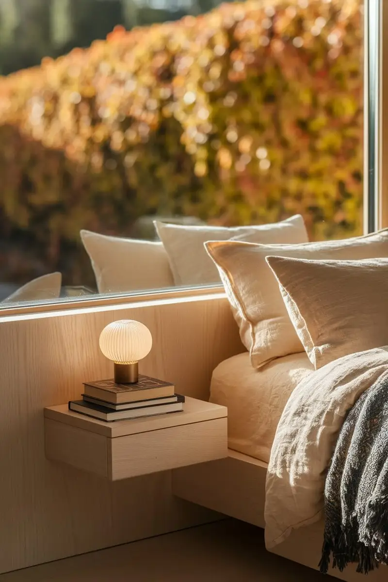 Floating nightstands are like magic shelves that save you floor space. They’re perfect for small bedrooms.