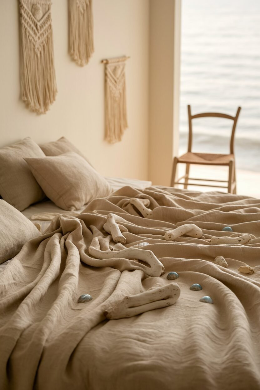 Use a palette of whites, blues, and sandy tones to mimic the shoreline. Decorate with seashells, driftwood, and nautical elements.