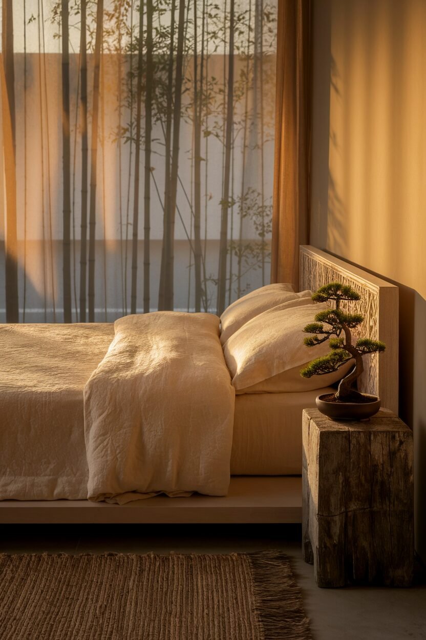 Use natural materials, soft colors, and minimal décor. Incorporate elements like a water feature or a small indoor garden.