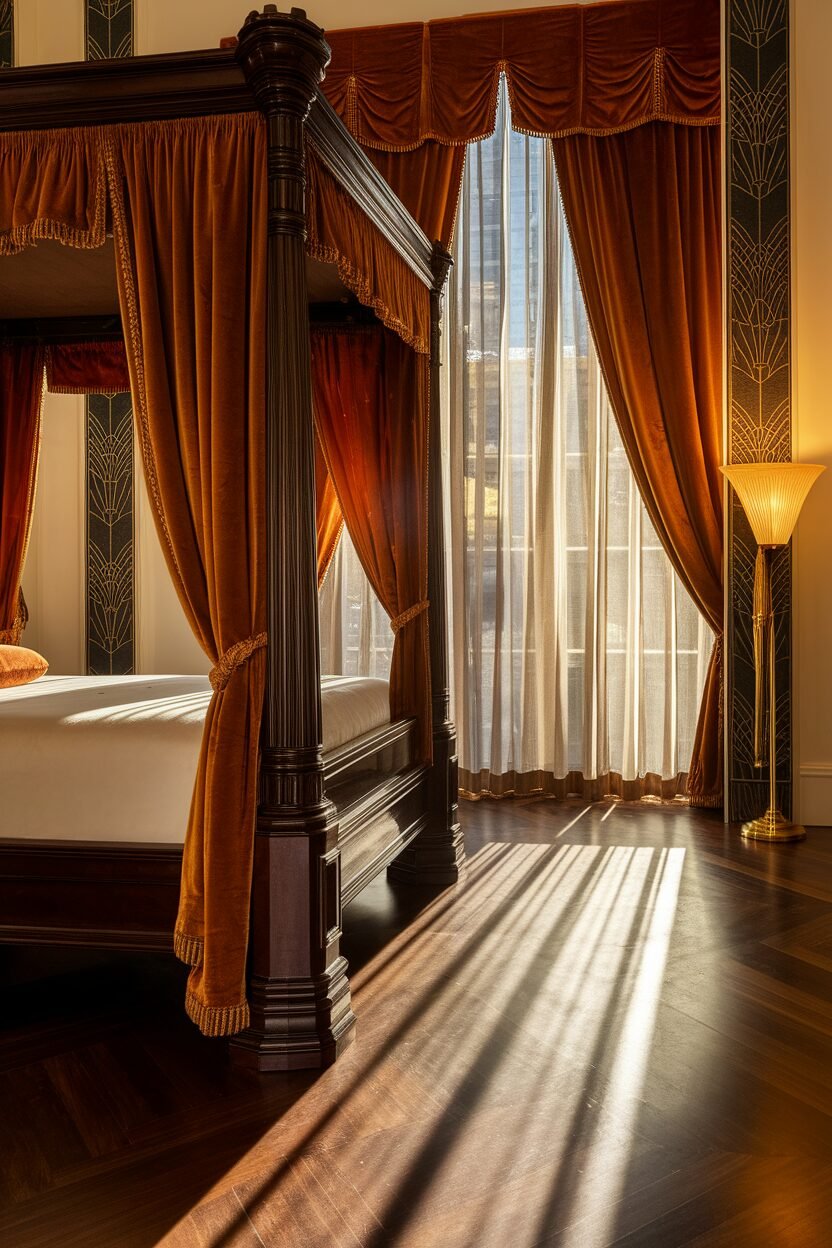 Update with new art or lighting fixtures to keep it fresh. An Art Deco bedroom feels like a step back in time to an era of opulence.