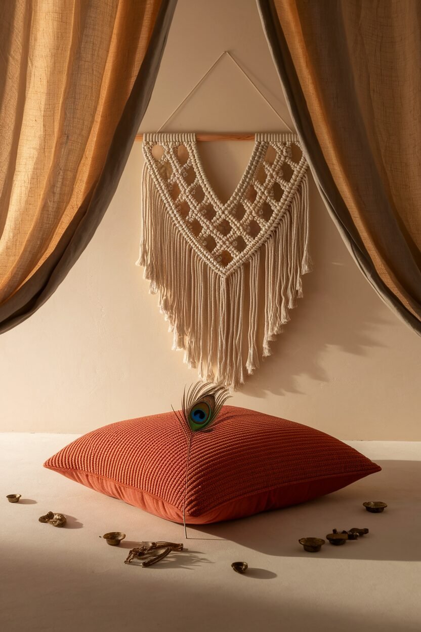 Layered rugs and vibrant tapestries add a rich texture to your space. Incorporate macramé wall hangings and potted plants for an earthy touch.