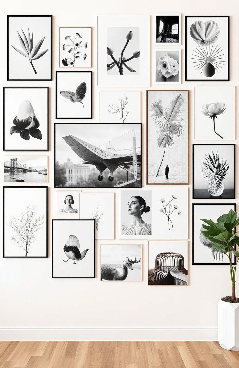 Turn your wall into a sophisticated statement with a monochrome collage. Stick to shades of beige, cream, and off-white to create a cohesive look.