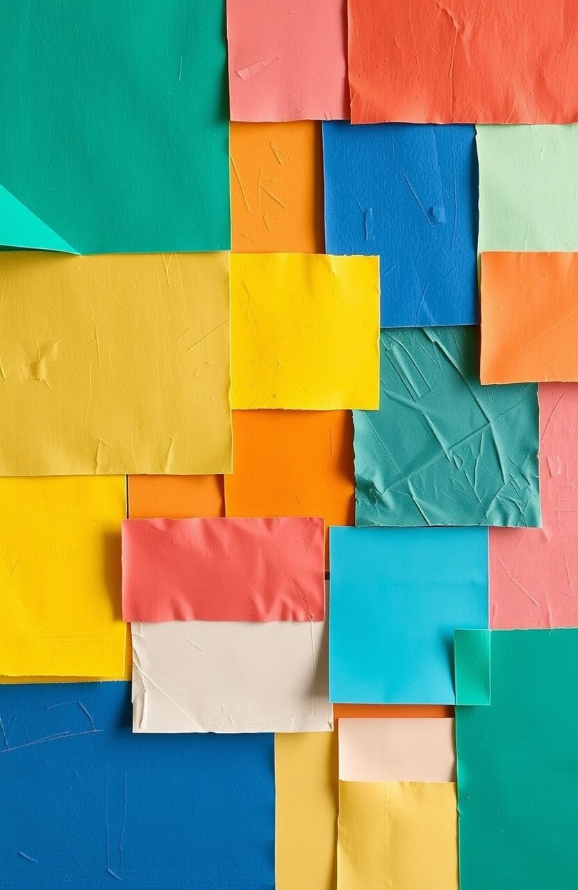 Add a vibrant splash to your wall with a color block delight collage. Use bold blocks of color in a variety of shades.