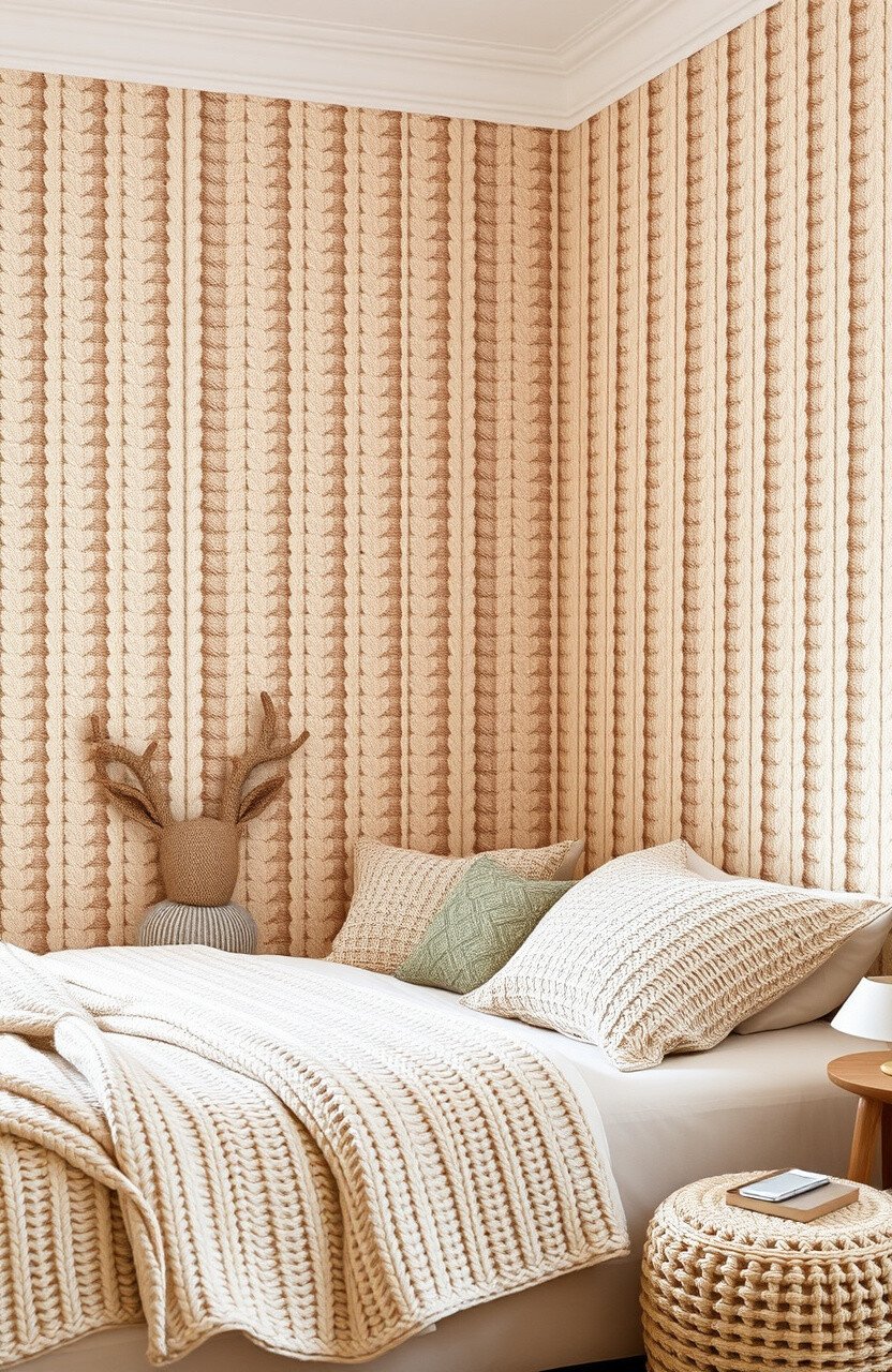 Imagine the comfort of a knitted sweater, but for your walls. Beige wallpaper with knit patterns can create a snug and welcoming environment.