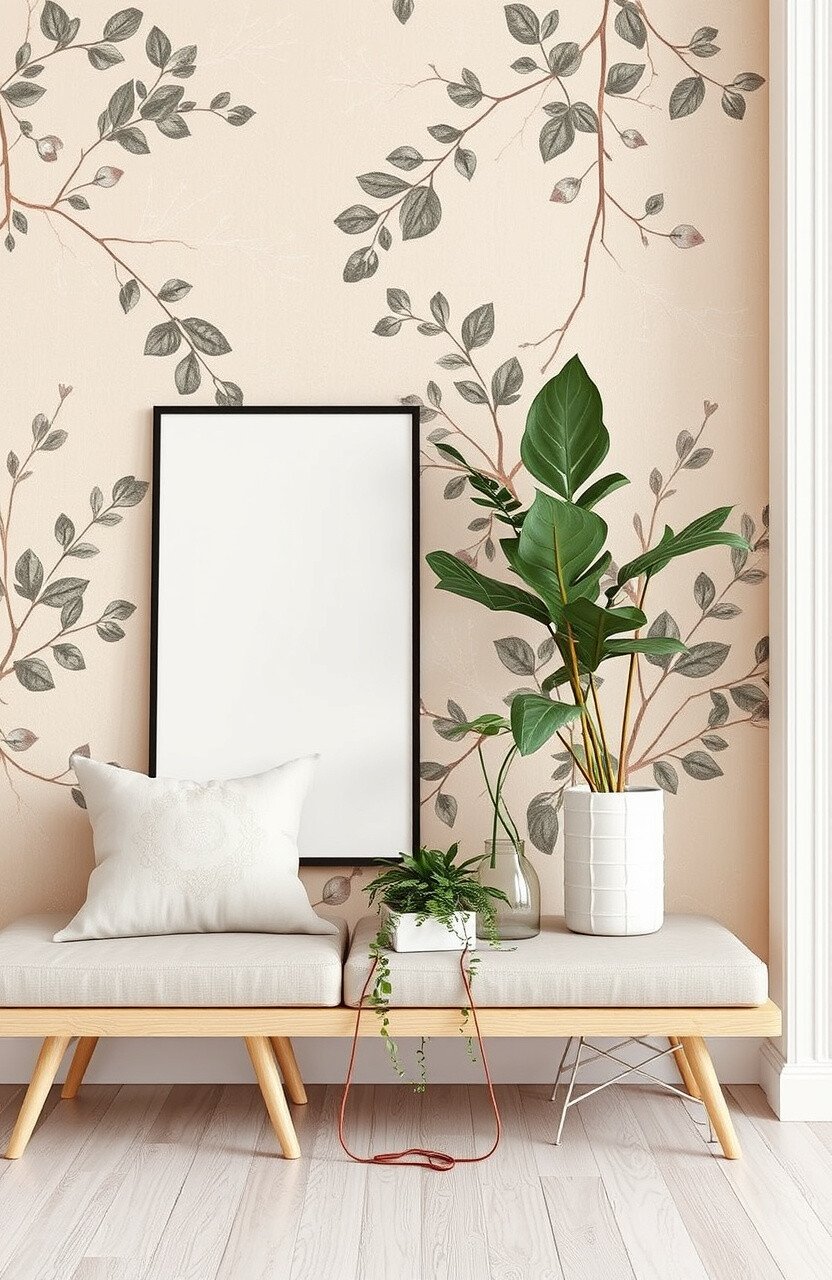 Bring the outdoors in with nature-themed beige wallpaper. Think leaves, branches, or subtle animal prints that evoke a sense of peace.
