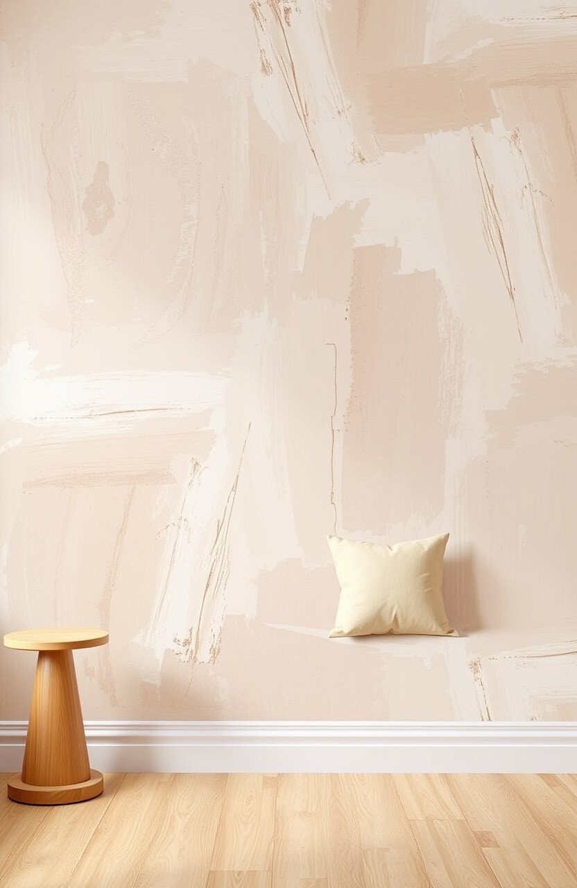 Channel your inner artist with wallpaper that mimics brushstrokes. Beige tones offer a soft and inviting canvas.