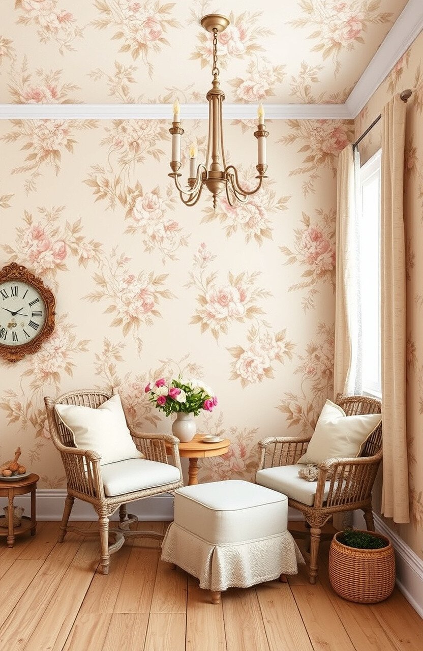This wallpaper idea brings warmth and coziness, making any room feel inviting. Think of it as wrapping your walls in a soft, floral hug.